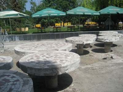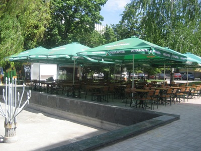 У областного русского драмтеатра ( тоже в центре города) несколько кафе арендуют часть сквера. Но даже их, похоже, никак не огорчает состояние фонтанов
