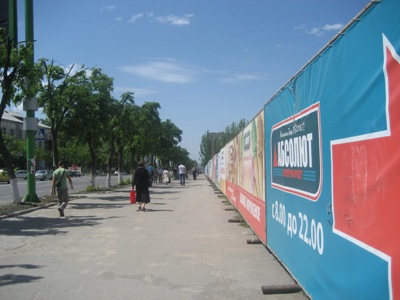 Одну из центральных улиц Луганска - им.Коцюбинского - вот уже около 5-ти лет "украшает" строительная стена, скрывая разрушенный каскад фонтанов у супермаркета "Абсолют"( бывший супермаркет "Медиана") . Ранее здесь была одна из наиболее любимых горожанами точек отдыха.