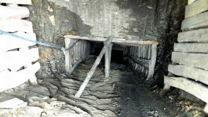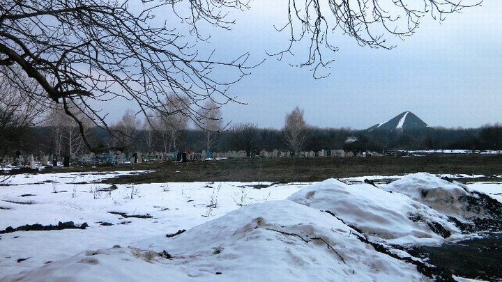 Эта шахта в самом деле находится прямо у поселкового кладбища, а выработки уходят под захоронения. Добыча в этих местах ведется на сравнительно небольшой глубине, и жители опасаются, что гробы скоро начнут падать прямо в забои. Возле кладбища – горы породы, отходы угледобычи. Ими засыпали дорогу, по которой жители поселка ранее ездили на кладбище.