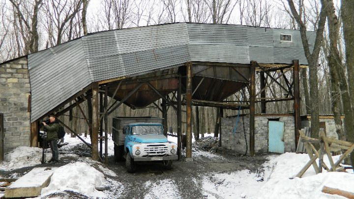 Шахту Подгорного язык не поворачивается назвать копанкой. Она отличается от прочих примитивных нор в лесу внушительными конструкциями. На земле построен углепогрузочный комплекс, откуда уголь насыпают в самосвалы. Гудят подъемные механизмы, суетится рабочая смена. Похоже, в одной смене работает около десяти человек, а это немало, как для «дырки».