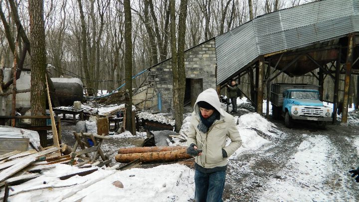 Утром мы отправились в Снежное на машине съемочной группы. Со времени прошлого визита в Северный у меня остались телефоны местных жителей, поэтому наш визит не был для них сюрпризом. После выхода ряда репортажей о тяжелой ситуации в поселке, в Снежном поднялся переполох. Часть копанок приостановила добычу, а власти пригласили активистов в поселковый совет для переговоров. «Копанка Рафика» на улице Шушенской, против которой местные жители восстали еще в ноябре, с тех пор так и не заработала из-за шумихи, однако, как говорят люди, ее владелец, местный предприниматель Рафаэль Тамазян, обещал однажды все-таки запустить шахту.