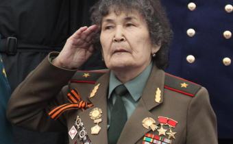 9 мая 2011г. Сначала я увидел её лицо и сразу вспомнил прошлогодний снимок. Но потом посмотрел на форму и, не знаю как вы, но я несколько опешил. Давно находясь на заслуженном отдыхе, в преклонных годах бабуля за год успела получить(судя по погонам) звание генерал-майора. Мало того. Рядом со звездой Героя Советского Союза преспокойно устроилась звезда Героя Социалистического труда. Вернитесь назад и ещё раз посмотрите на прошлогодний снимок-одно лицо и одна звезда. А какая карьера за год! Однако. Последнее награждение званием ГСТ состоялось 21 декабря 1991г.( оперная певица из Казахстана Бибигуль Тулегенова). И вот ровно через 20 лет, когда нет того соцгосударства появляется его соцзвезда. Вот я и спрашиваю- КАК ТАКОЕ может быть???