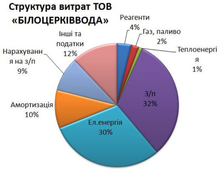 Инфографика структуры тарифа на водоснабжение с сайта ООО «Белоцерковьвода».
