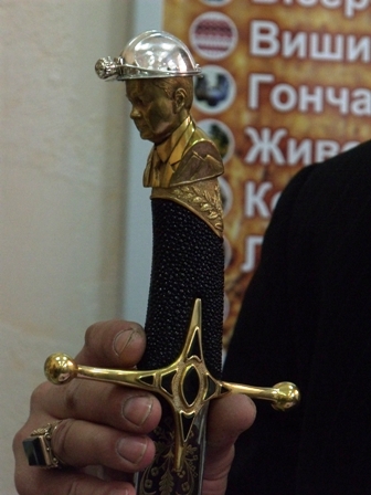 Сабля с Виктором Федоровичем Януковичем, на самом деле, по словам Ткаленко, посвящена…родному шахтерскому городку Антрациту. Она так и называется – «Блеск Антрацита».