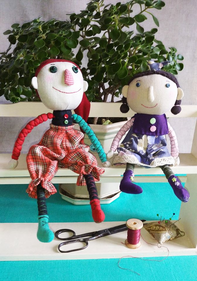 Технологически куклы были пошиты двумя способами - либо по принципу Тильды - голова , шея и туловище цельнокройные, длинные руки-ноги. (Тильду придумала норвежская художница и дизайнер Тоне Финнангер в 1999 году).Либо по принципу Вальдорской куклы, где все части тела шьются отдельно, наполняются холлофайбером (можно синтепоном) и пришиваются к туловищу.