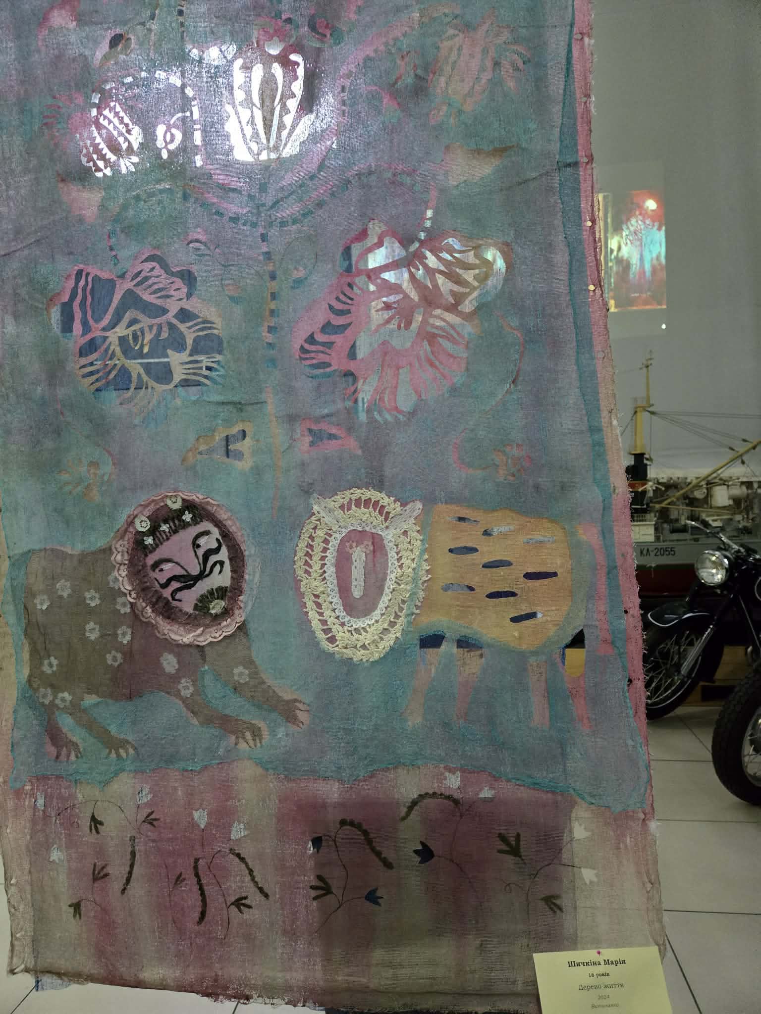 "Зміст цих робот- космічний символ добра і милосердя, а з цієї роботи можна сказати все починалося. Однак в силу трагічної випадковості, робота загинула під час атаки навесні позаминулого року, оскільки конференц-зал Київської державної академії декоративно-прикладного мистецтва і дизайну ім. Михайла Бойчука, де робота експонувалися, був вщент зруйнований під час атаки міста. Но ми раділи вже тому, що на щастя ніхто в той момент не загинув, а це була перша половина дня, будній день, коли в приміщенні було багато студентів… ", продовжує розповідати Юлія.