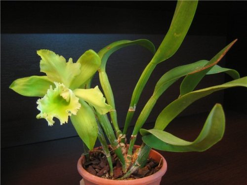 Каттлея Variegated- появилась у меня этим летом, данный экземпляр имеет удивительные окрас листвы - широкая желтая кайма по краю листа, так что такой экземпляр будет радовать своим внешним видом в любое время года, даже в не цветущем состоянии.