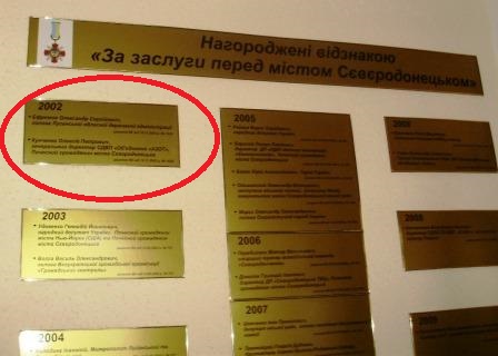 ФОТО 5. В фойе мэрии Северодонецка и сегодня висит награжденный «За заслуги перед городом Северодонецком» А.Ефремов.