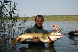 Охотятся в основном на сома, сазана, судака, щуку, толстолобов, белых амуров… Попадались экземпляры до 85 кг!