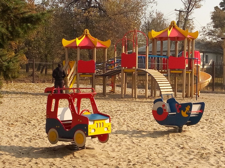 Тротуары выложены цветной плиткой. Не все еще, но, судя по наличию поддонов с добротно запакованными новыми ее штабелями, останавливаться на достигнутом поселковое начальство явно не собирается. Во дворах радуют глаз свежими красками целые игровые городки.